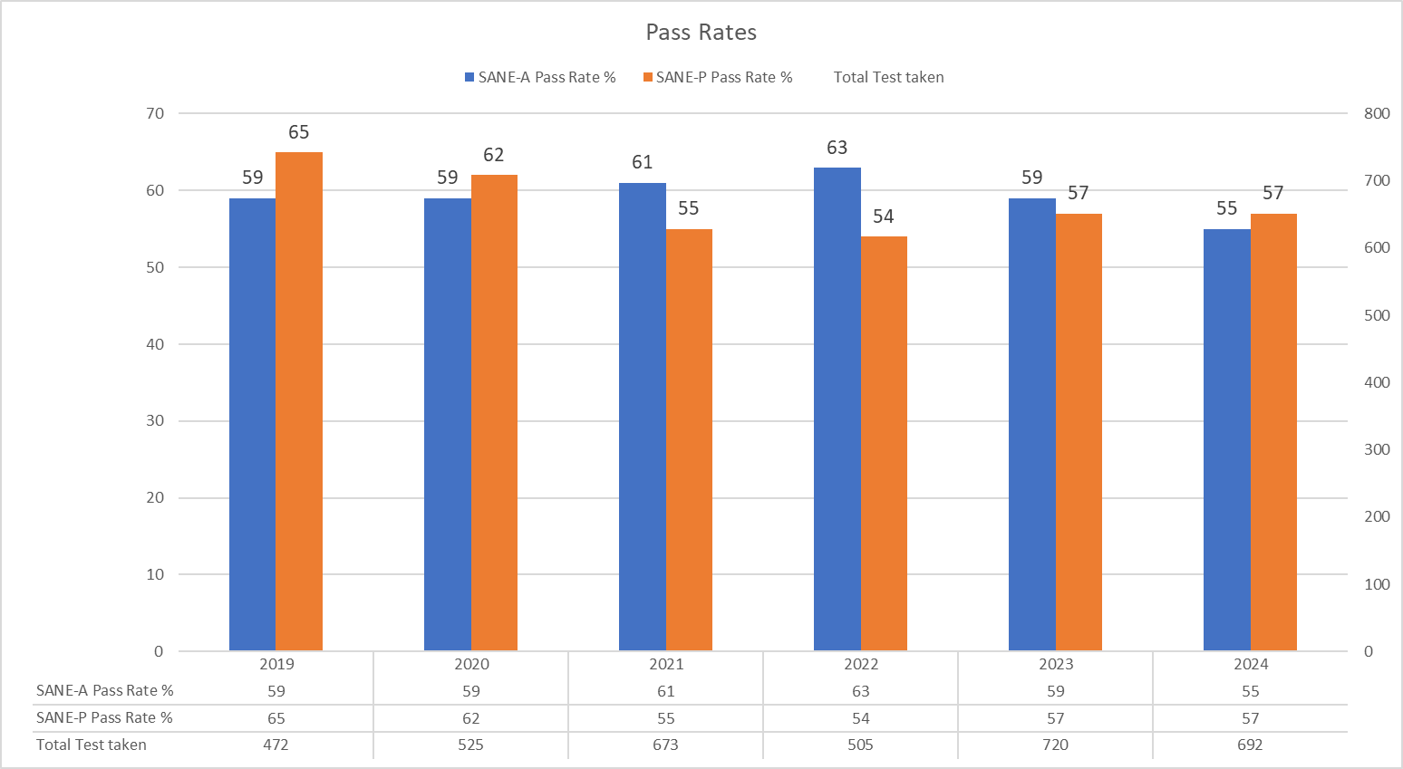 The SANE-A and SANE-P examinations are offered twice a year – during the months of April and September.